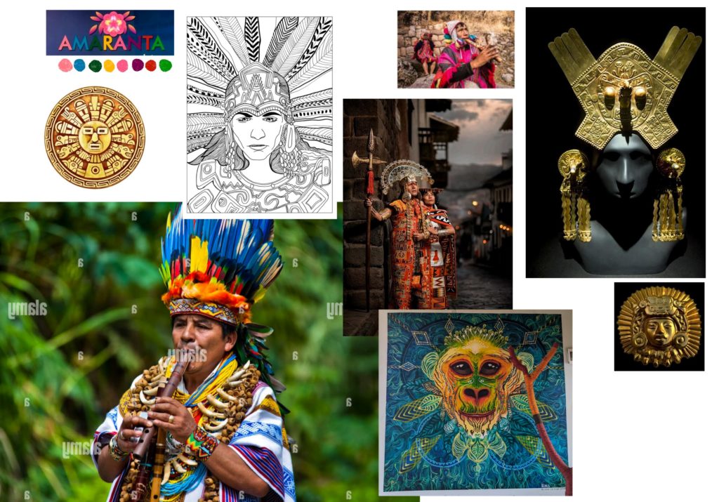 Ici par exemple, mon client souhaitait quelque chose à la fois spirituel et naturel, en clin d’oeil à la culture Inca, pour son restaurant. J’ai donc exploré la piste du chamane, avec des coiffes incas.